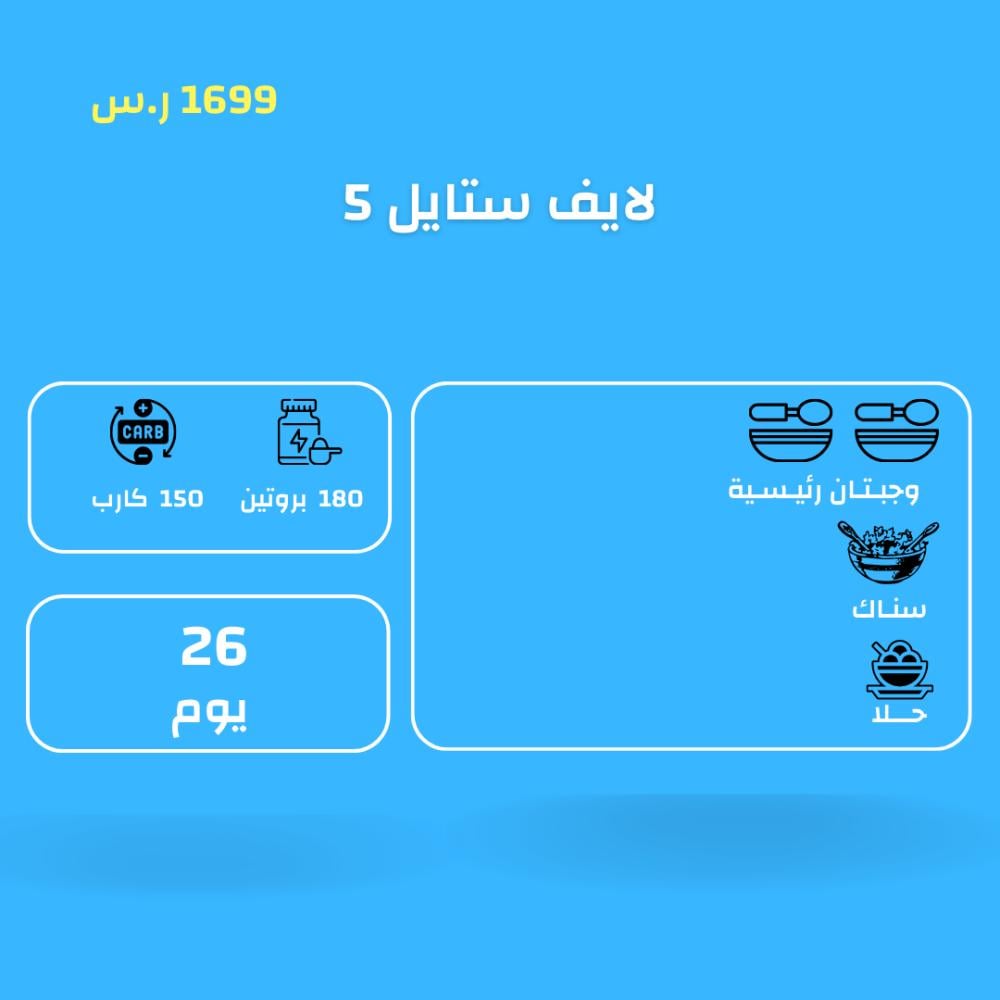 اشتراك وجبتين 26 يوم ( باقة لايف ستايل 5 )