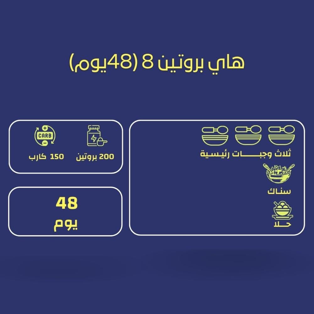 - باقة هاي بروتين 8 تعتمد على مكونات عالية الجودة وتقنيات تحضير متقدمة لتقديم وجبات صحية ولذيذة في الوقت نفسه.